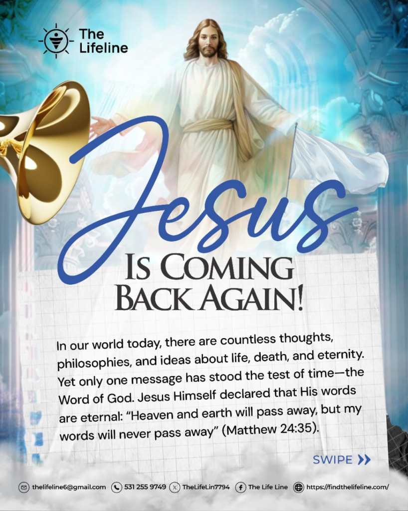 Friend, Jesus is coming back again. Don’t wait until it’s too late. Today is the day of salvation. Turn to Him, trust in Him, and be ready—so that when He comes, you will rejoice and not be afraid.