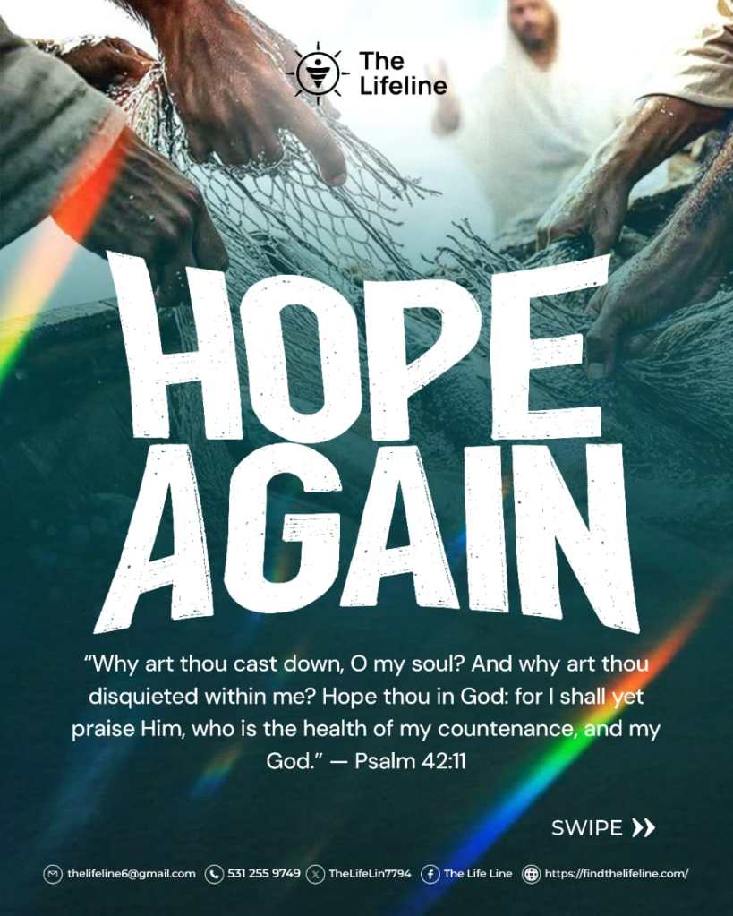 Even the psalmist once felt this way. His soul was “cast down” and troubled within him. But in the midst of despair, he spoke to his own heart and said, “Hope thou in God.”